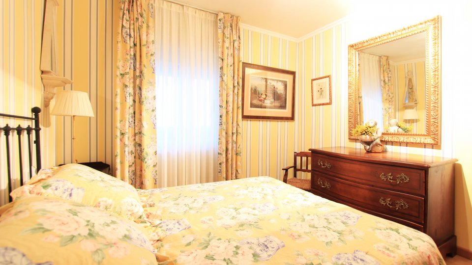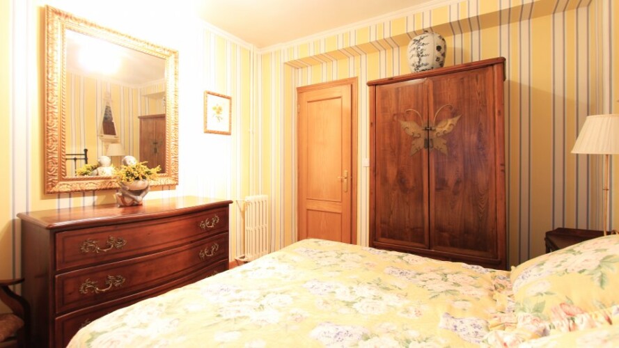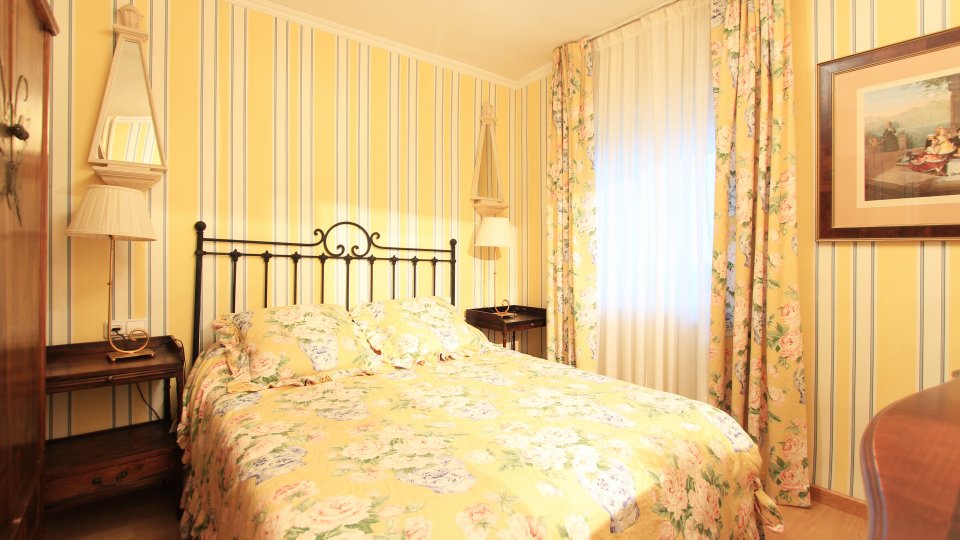 El dormitorio principal dispone de cama doble y de un armario y una cómoda.