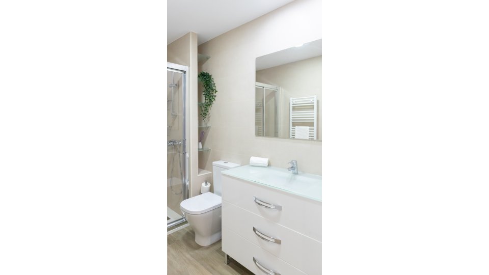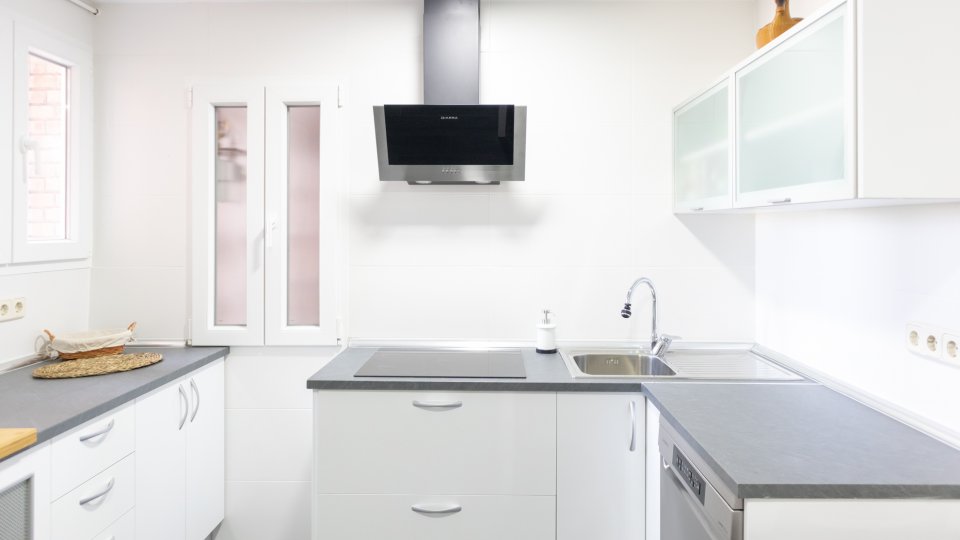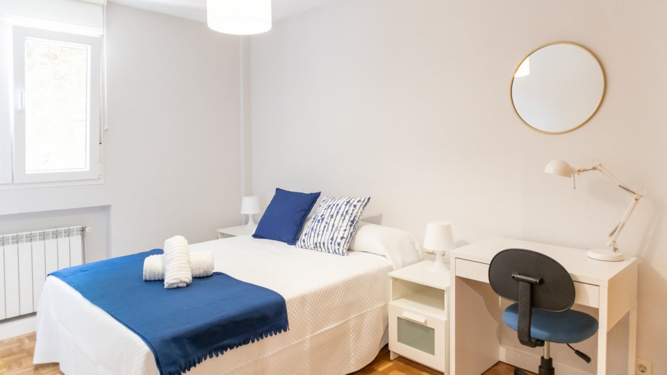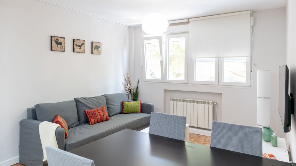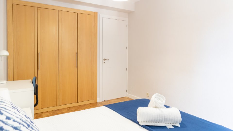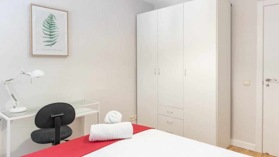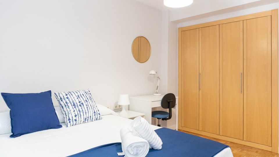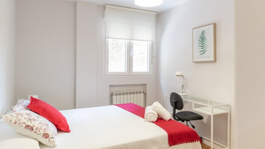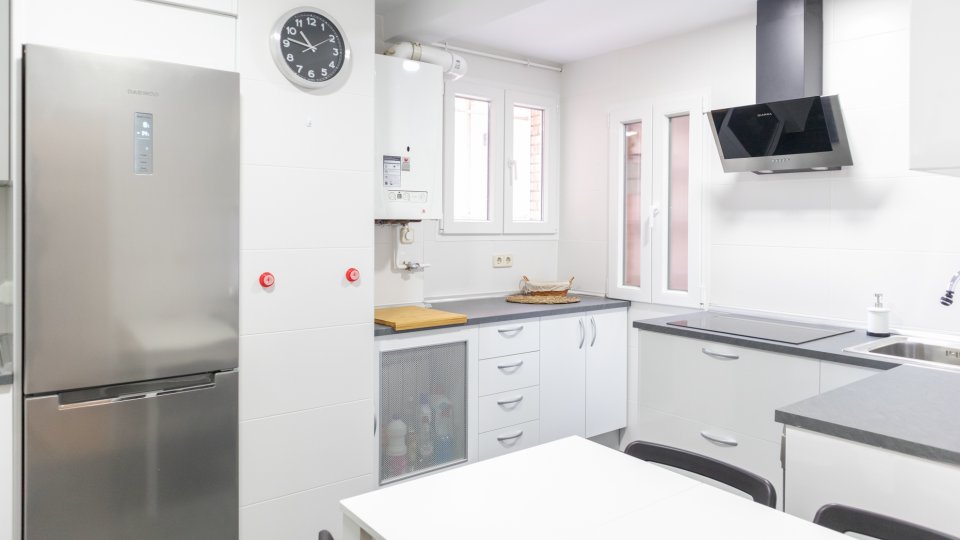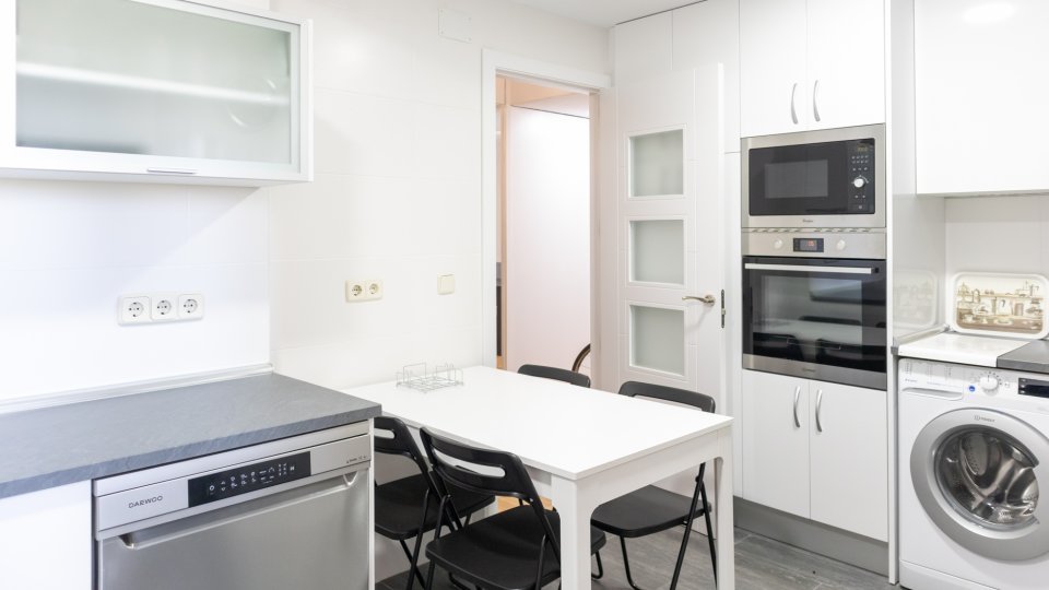 Urbantec Realty te ofrece una vivienda de tres dormitorios, todos ellos con cama doble, mesa de trabajo, un amplio salón-comedor y una cocina independiente también muy amplia.