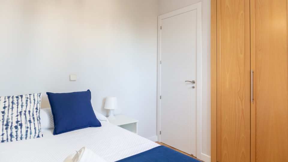 A la zona de dormitorios acedemos a través de un lateral del salón. Todos los dormitorios son con cama doble, mesa de trabajo o estudio y armario empotrado.
