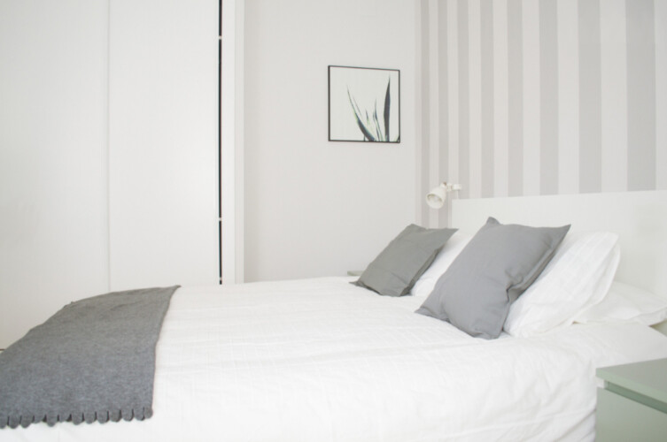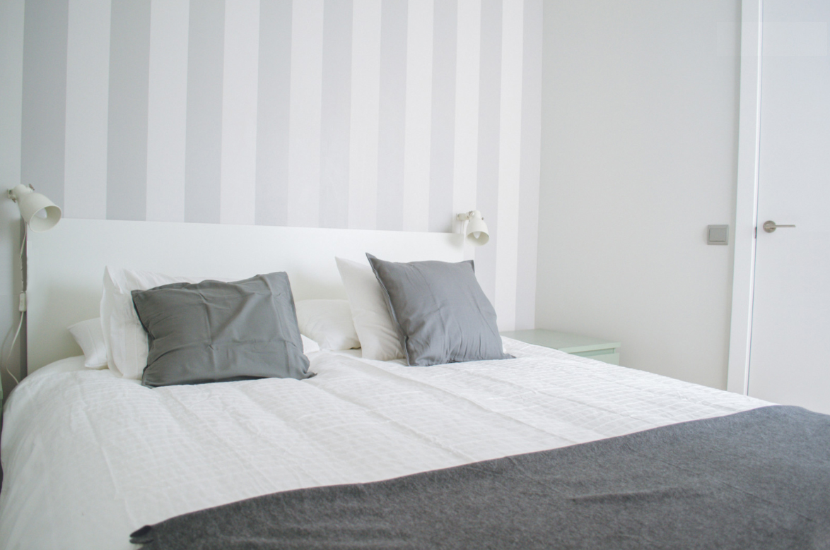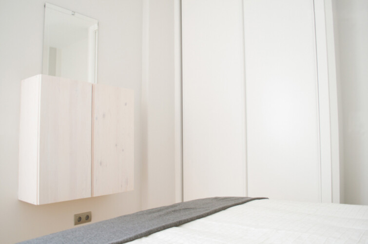 El dormitorio cuenta con una gran cama doble que dispone de cajones en la parte de abajo y mesillas de noche en sus laterales. Además el dormitorio incluye un gran armario empotrado.