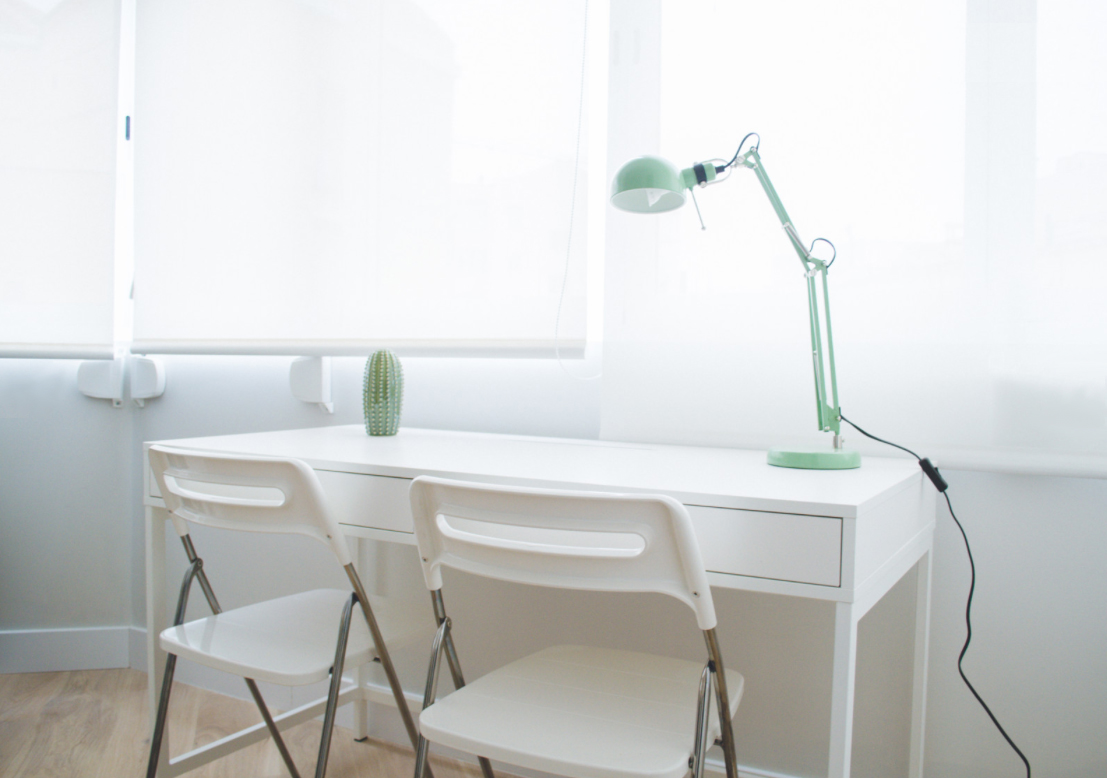 El salón, al igual que el resto de la vivienda, cuenta con mucha luz debido a sus grandes ventanales con vistas al exterior. Dispone de un sofá, mesa para televisión, y una zona de estudio con un bonito escritorio.
