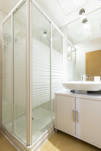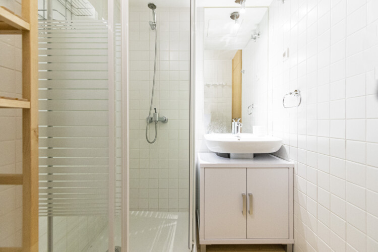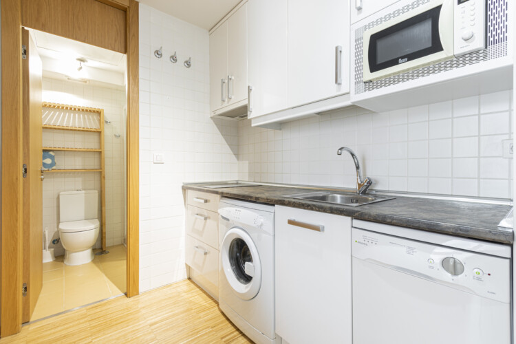 El cuarto de baño, con ducha, se sitúa al final de la zona del salón comedor y de la cocina.