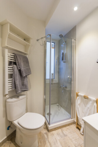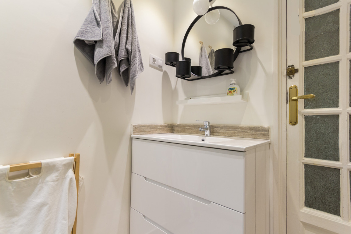 El cuarto de baño, totalmente reformado, dispone de plato de ducha.