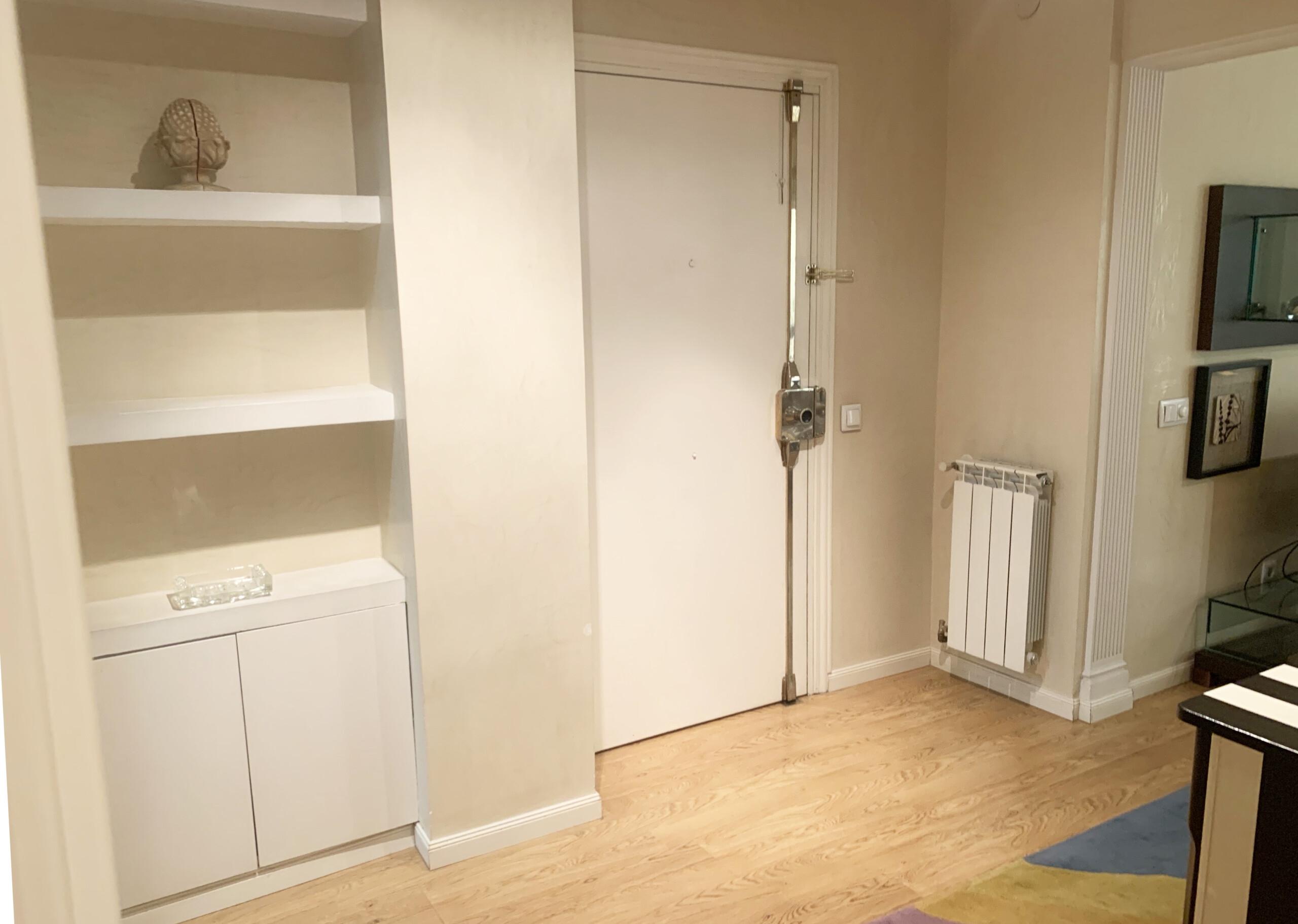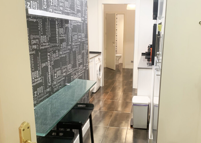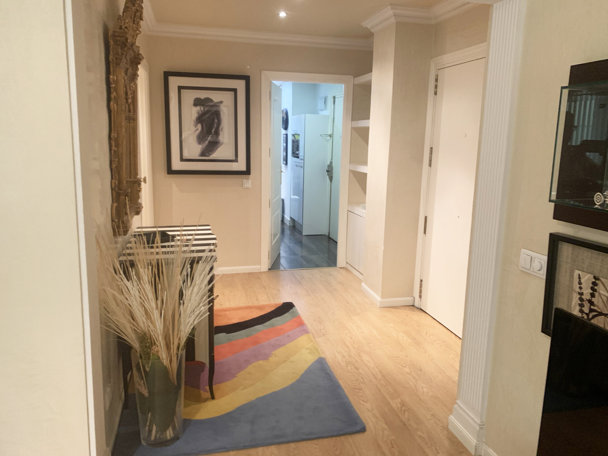 Al entrar en la vivienda está situado amplio recibidor desde cual accedemos al salón comedor. También accedemos a dos de los tres dormitorios y a la zona de la cocina junto con el dormitorio de servicio.
