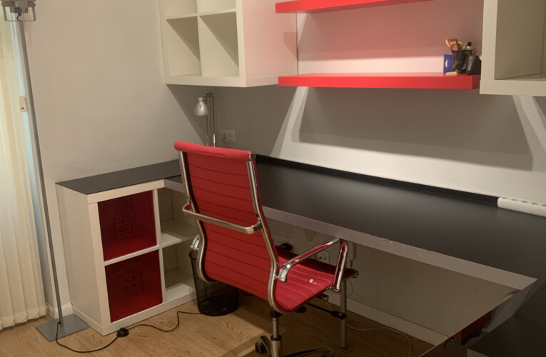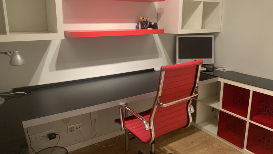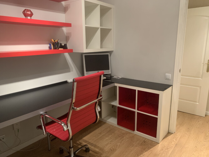 El segundo dormitorio en la actualidad se utiliza de despacho o zona de trabajo, y dispone de cama una gran mesa de escritorio, baldas para los libros y un armario empotrado.