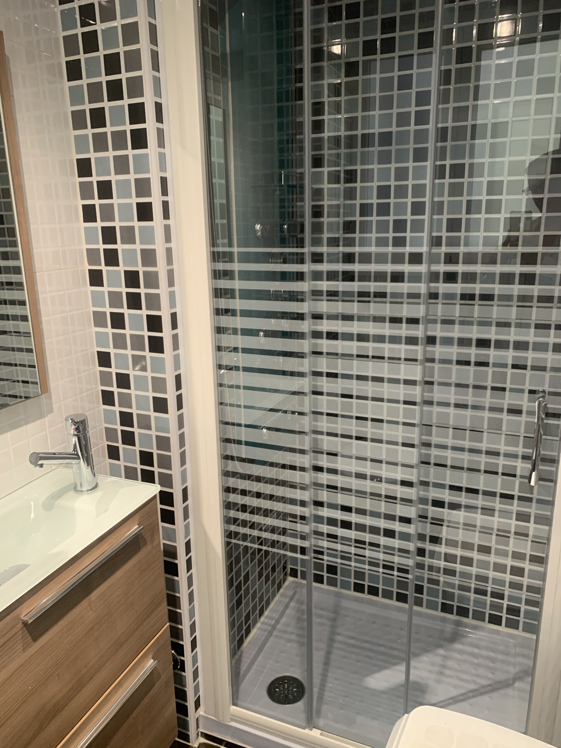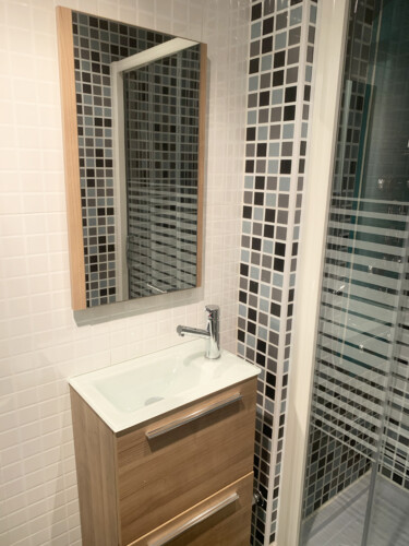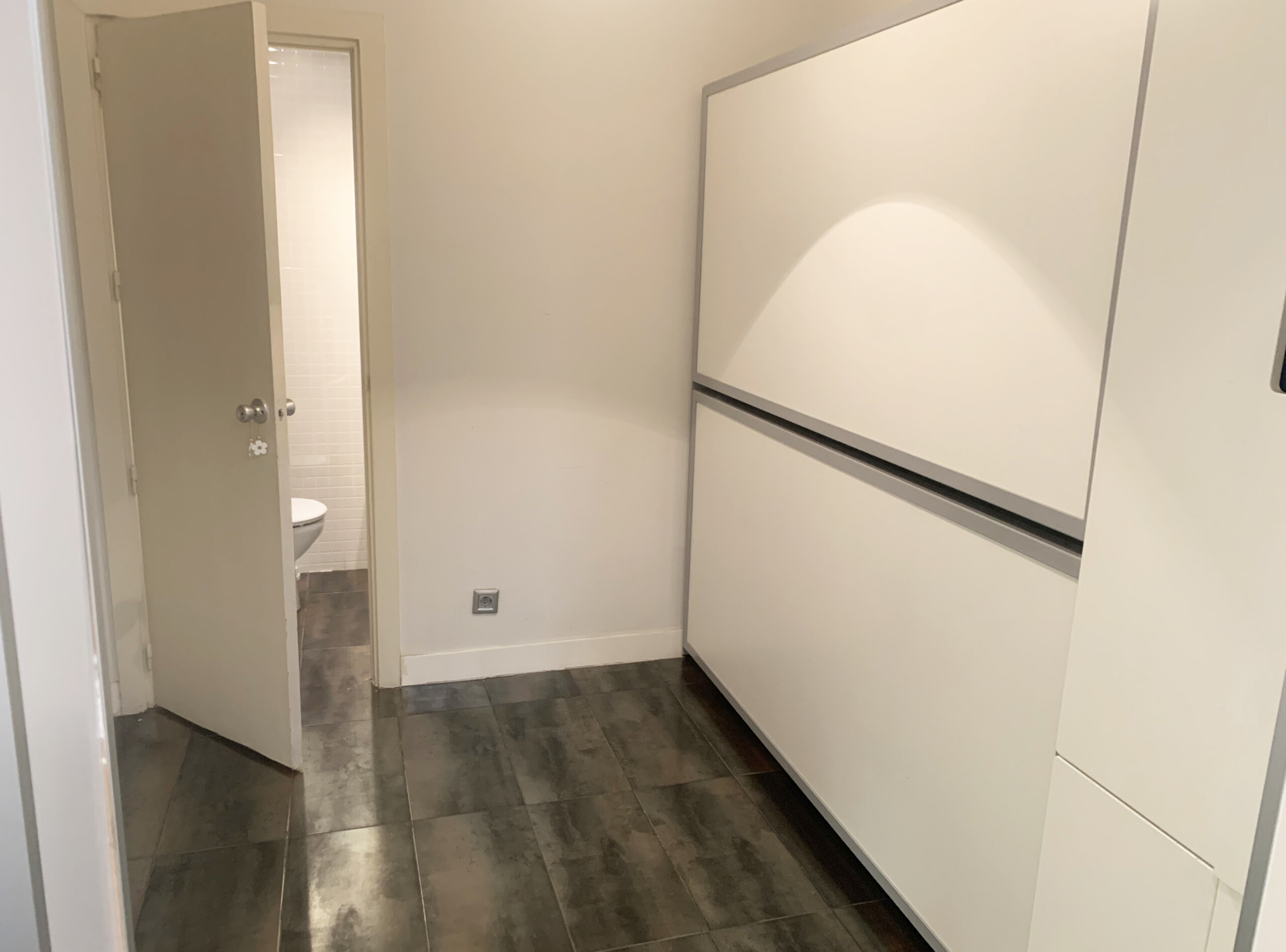 Desde la cocina accedemos al dormitorio de servicio, este alberga una litera plegable, un armario y un cuarto de baño en suite con plato de ducha y ventana también al exterior.