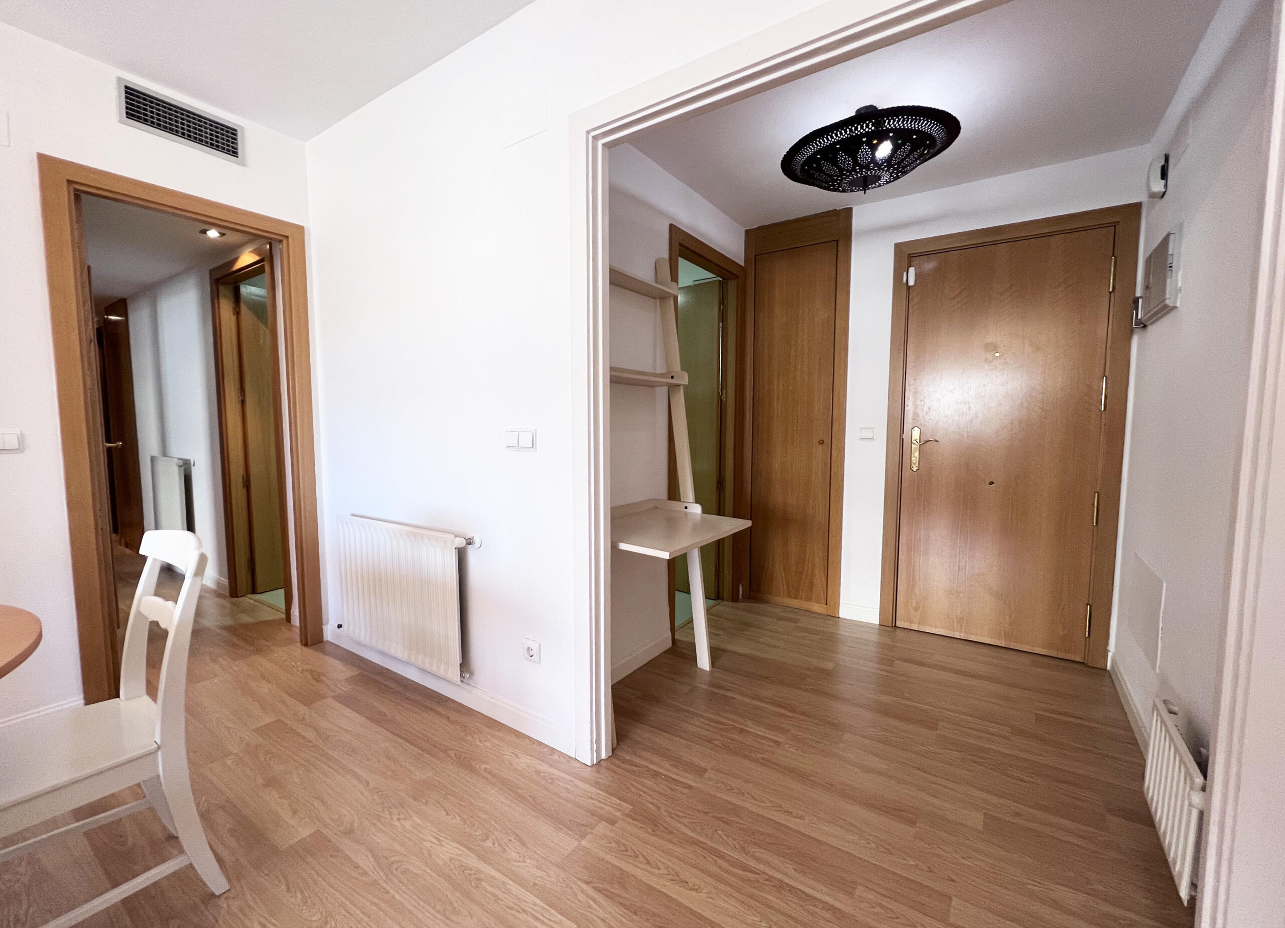 Al entrar en la vivienda está situado un pequeño hall que hace las veces de distribuidor desde donde accedemos al salón comedor y a la cocina.