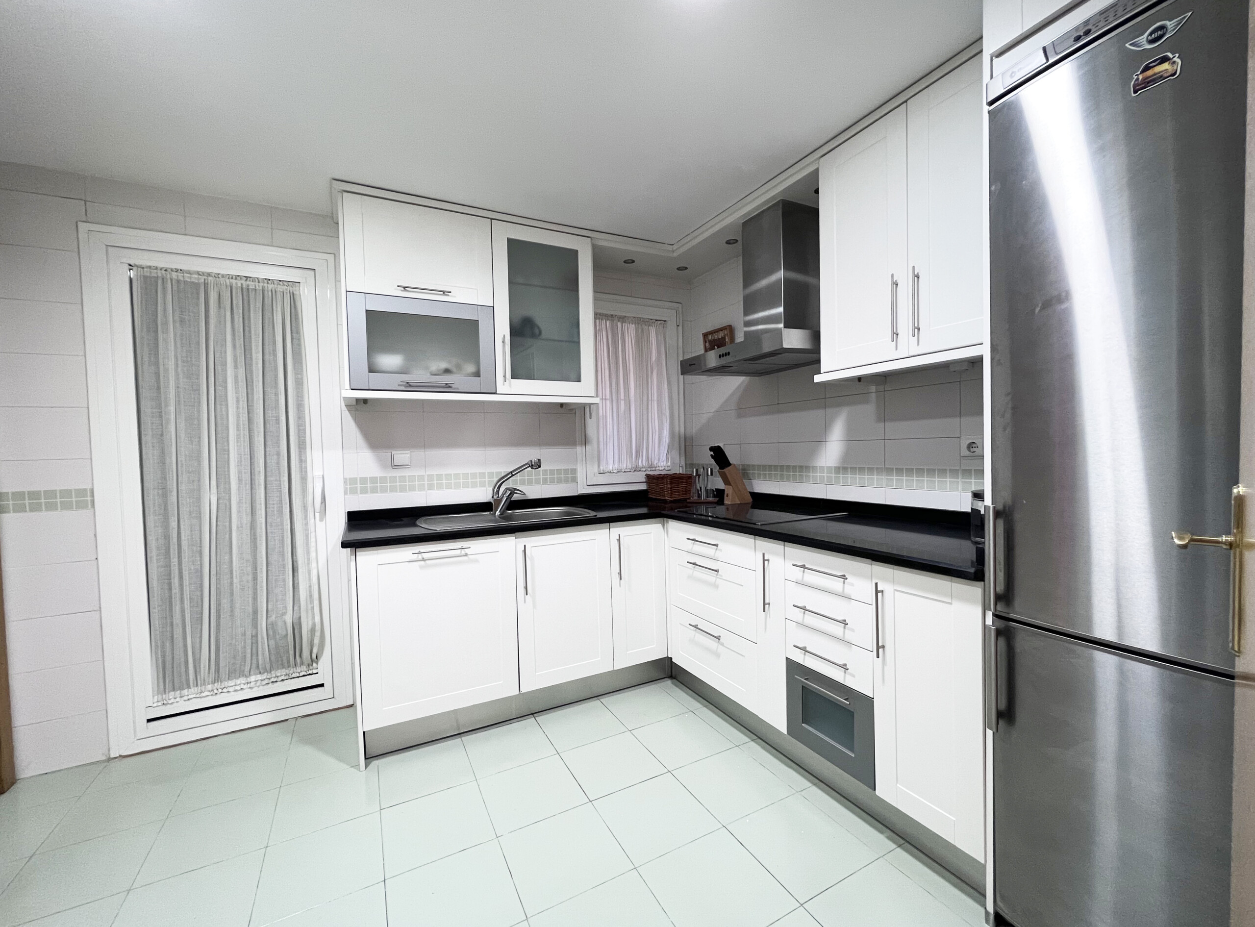 La cocina es amplia y dispone de todos los electrodomésticos, además de una zona independiente de lavadero.
