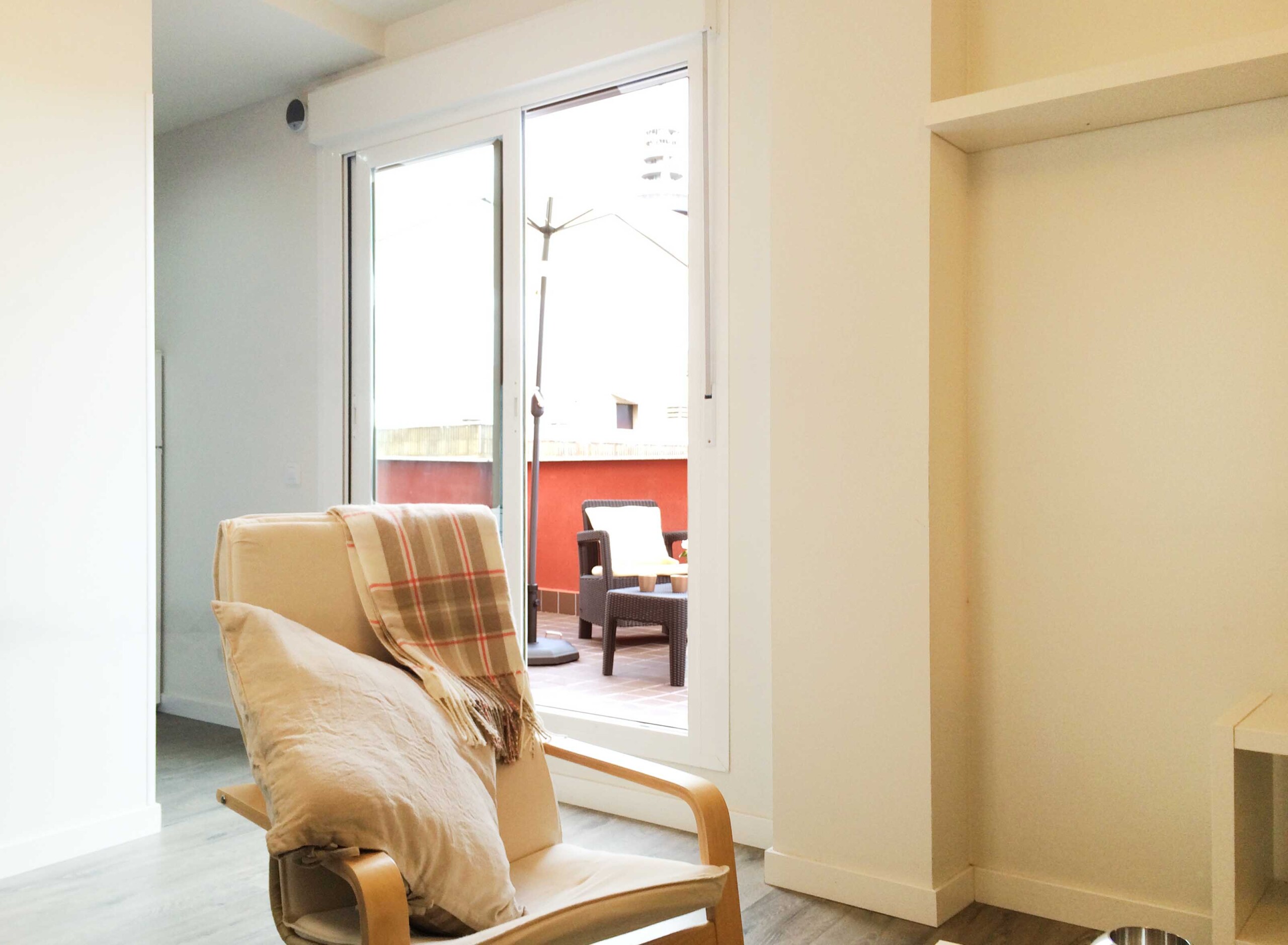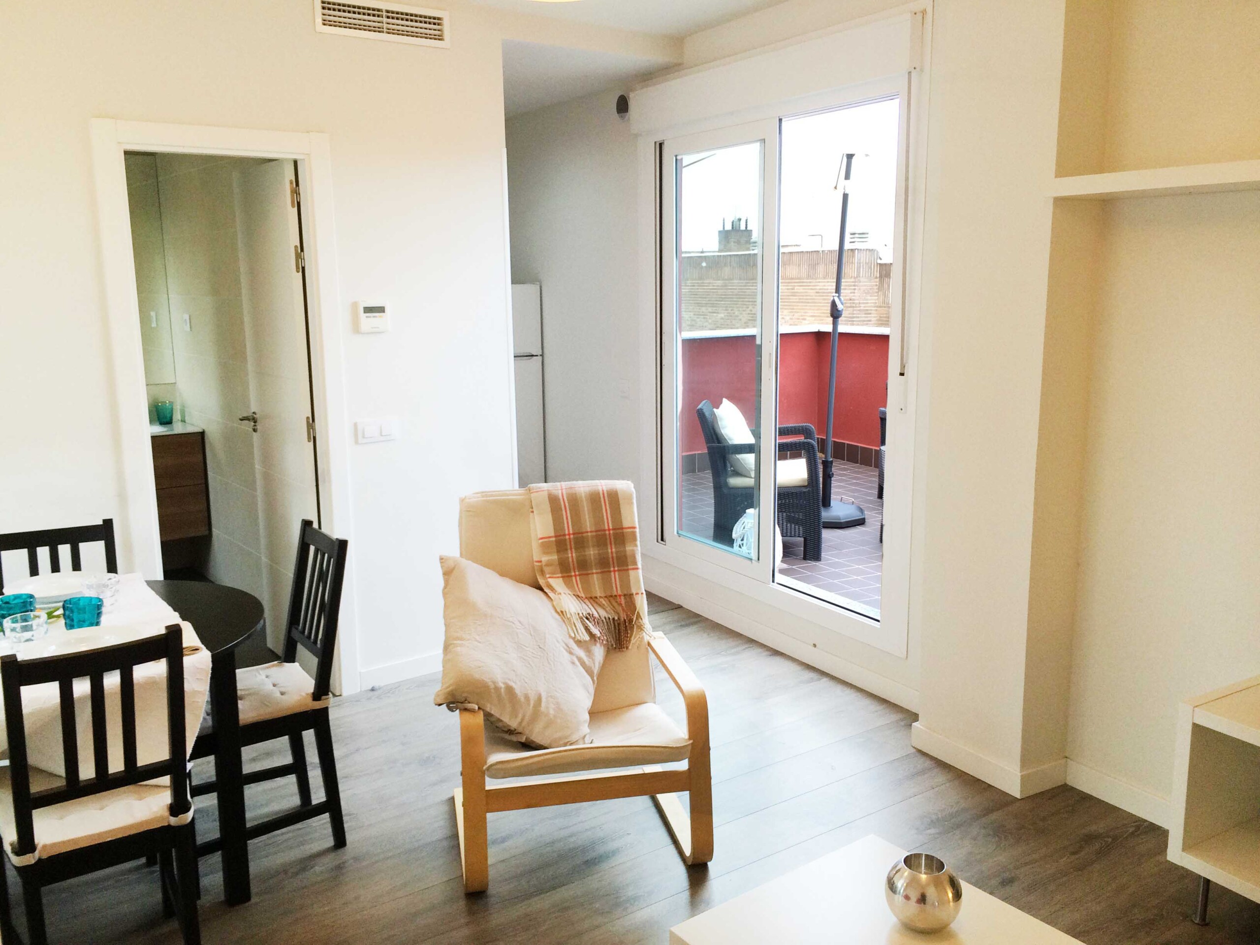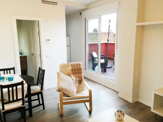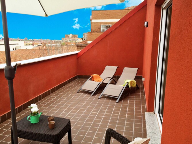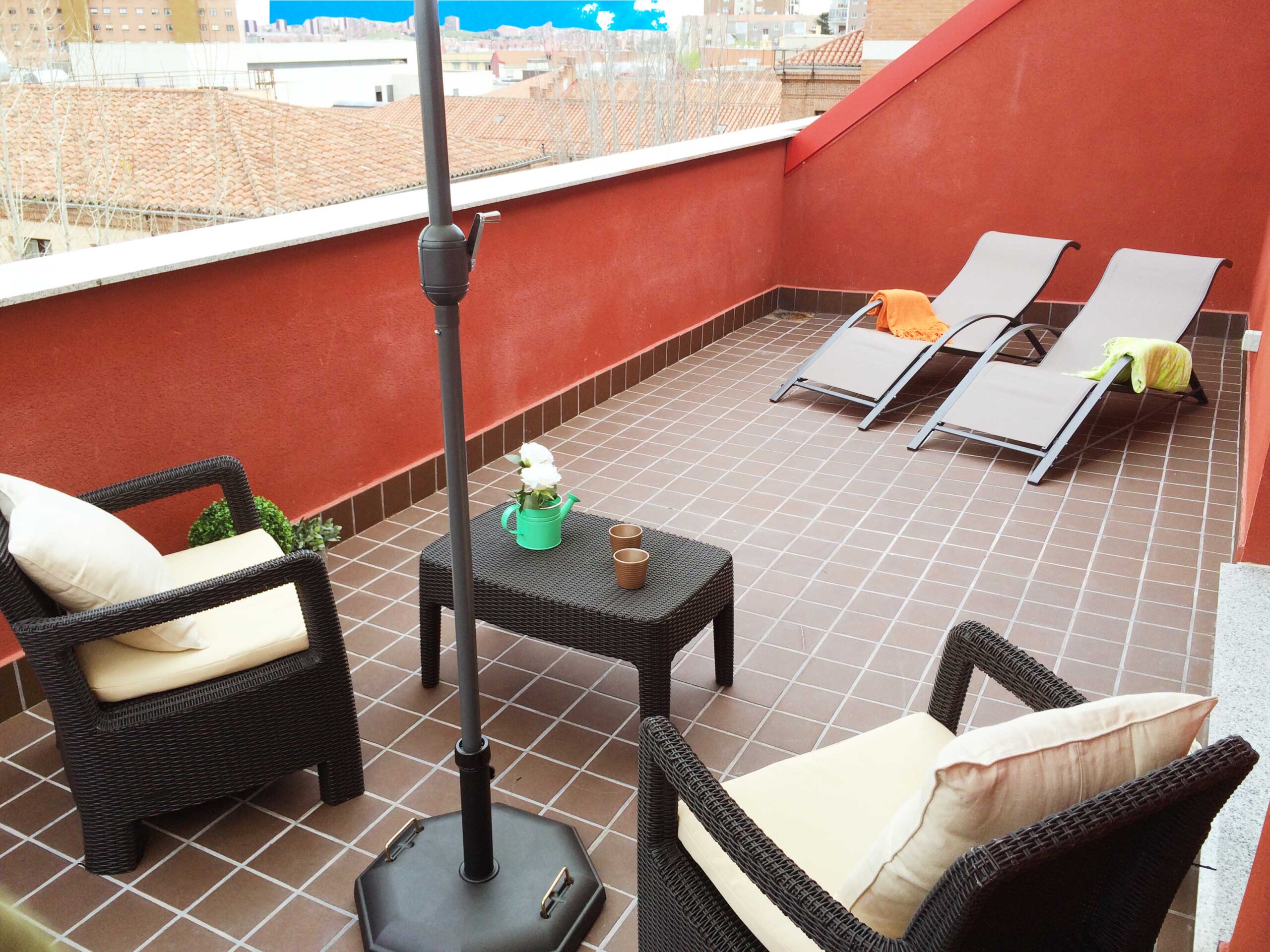 Vivienda Ático -Estudio reformado con terraza de 30 m2 muy luminoso con vistas de todo Madrid construido con altas calidades. La vivienda se alquila completamente amueblada (sofá-cama, mesa de comedor, sillas ropa de cama, menaje, etc.).