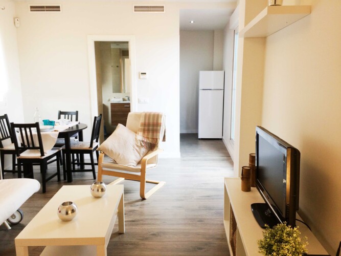 La vivienda dispone de Cocina equipada con Lavadora, frigorífico y lavaplatos.