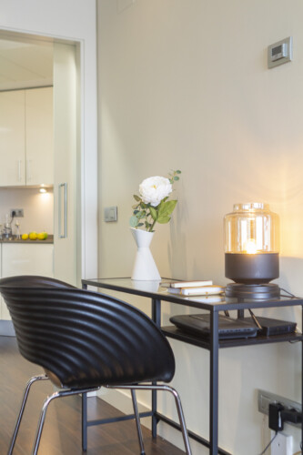 El apartamento dispone de un dormitorio amplio con una cama Queen Size desde donde puedes disfrutar de unas fantásticas vistas de la ciudad, en especial al Palacio Real. También dispone de una zona de salón comedor con un sofá de más de tres metros, así como de una televisión de 55 pulgadas.